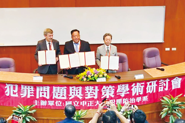中正犯防系與德國杜賓根大學犯罪研究所、日本東北大學犯罪心理學,簽訂學術交流協定。未來除了學術人員互訪還能讓同學有交流的機會。