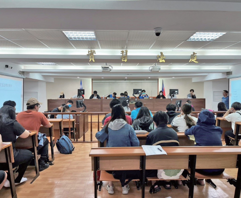 法律系在實務訓練上特別用心,吳景欽主任表示,法律系擁有完善的實習法庭設備,無論在軟硬體上皆屬全國法律系前列,學生可在此模擬訴訟實務,熟悉法庭操作流程,除此之外,法律系還設計了一系列的實務課程,並邀請來自金融業的專家到校授課,例如打擊詐欺與洗錢防制等主題,讓學生在理論學習之外,接觸實務操作,了解產業需求。