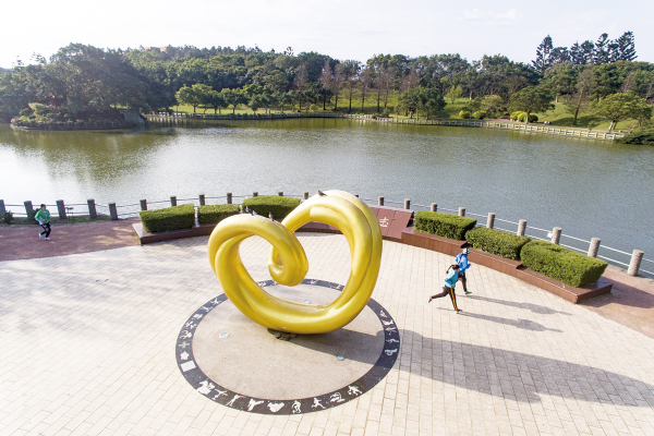 和產學簽署,讓學生享有多元培育資源。圖為校內志清湖旁之公共藝術作品〈榮耀的