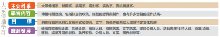 傳播媒介與資訊流通深深影響現代人的生活,資訊平台越趨多元化,數位發展早已是傳播學群的趨勢。在資訊爆炸的現今,如何篩選和編輯資訊更是相當重要。因此,未來的傳播人才需有跨域學習及溝通整合的能力,除了基本專業外,還得學習運用傳統平面、多媒體等各種傳播通路,以培養複合式專才。在校期間更應透過實習培養「做中學」的就業力,以適應快速變化的世界。