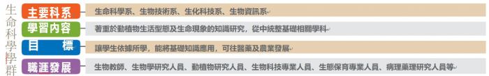 生命科學像來是21世紀的明星產業,其中的生技產業,更是政府極力吹捧的行業。在食品科學、營養保健、製藥方面,許多跨領域的運用,可讓該學系的畢業生學以致用。而生命科學系即是生命現象的研究,結合生物學、化學、醫學及藥學的跨域整合,必須投入大量心力及產能,對於該產業的推動實有裨益。