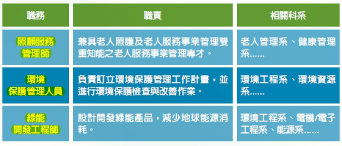 另外,地球只有一個,隨著全球氣候變遷及能源情勢日益嚴峻, 各國均積極推動節能減碳措施,也造就了綠能科技及環境保護產業的發展,再加上政府的鼎力支持,相關人才需求量也因此提升。