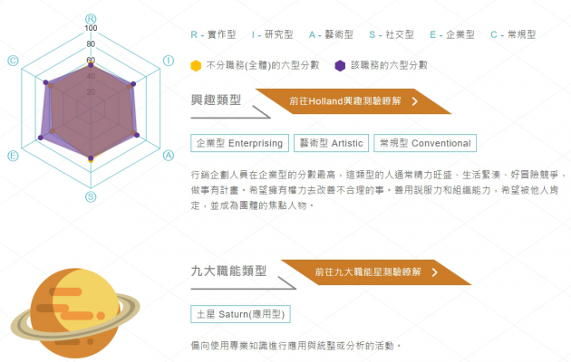學生最好奇的莫過於哪些科系畢業後從事該職務的人最多,職務大辭典分析了前五名相關科系,以及最高學歷比例。其中,相關科系可與大學網連結,能一目了然台灣哪些大學有相關學系, 假如有興趣,可從這些學系著手選填志願。