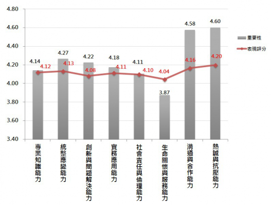 透過調查發現,面對未來瞬息萬變的環境,亟需跨域合作,並且需要一定的抗壓性才能沉著地面對並解決問題。因此,企業用人最重視的,並非是「專業知識能力」,而是「抗壓能力」與「溝通合作能力」,另外,解決問題和應變能力也因為環境的變遷,同樣受到企業矚目,因為這些能力都需要早早培養,透過時間來熟成,而非短時間透過訓練就可以快速提升。