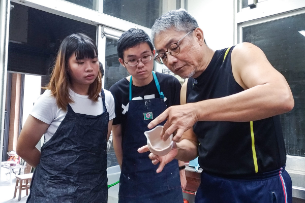 ▲陶藝教師指導學生。