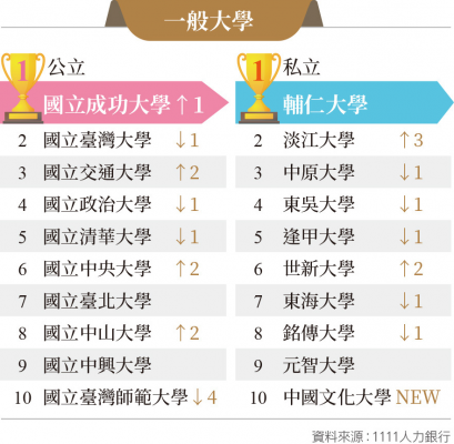 輔大蟬連私校冠軍 淡江名次躍升 中原、東吳 跨域學習培育未來人才