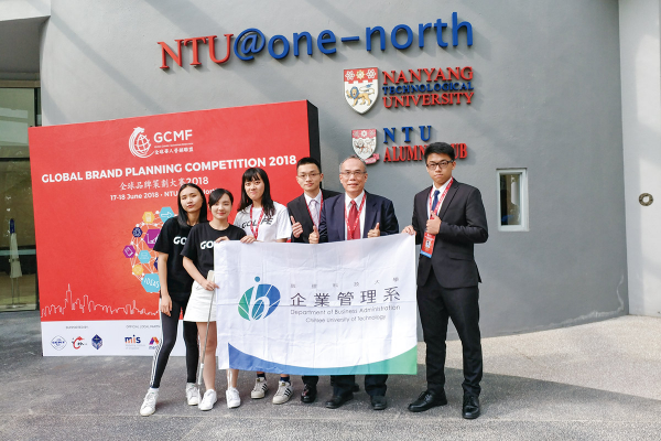 ▲致理科大企管系倪達仁老師(右二)指導學生參加2018全球品牌策畫大展榮獲季軍。