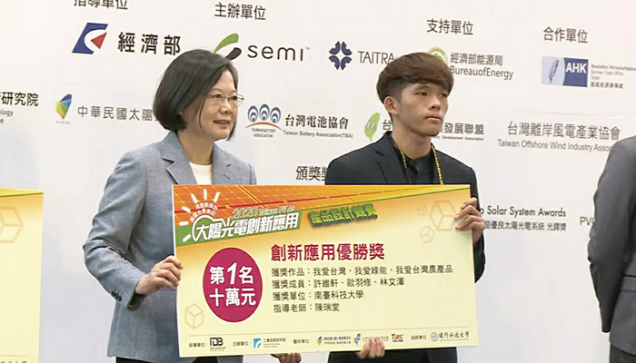 ▲ 南臺科大光電系榮獲「2020臺灣國際智慧能源週」太陽光電創新設計應用競賽第一名。