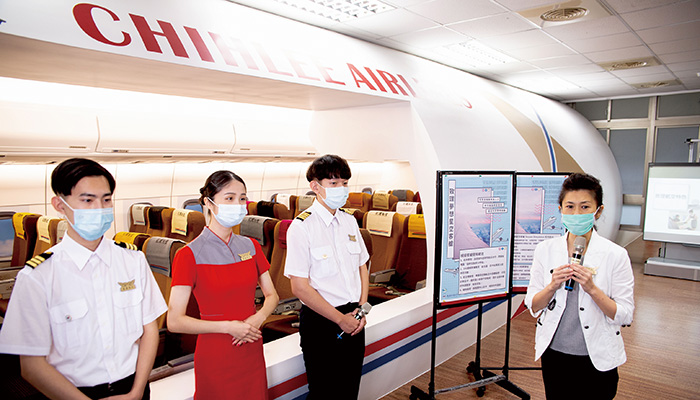 除硬體到位,在教學規畫上,身為前長榮航空座艙長的老師徐端儀更是不馬虎!設計「客艙外語實境演練」、「航空服務模擬」等課程,扶植學生旅運管理及空勤服務等知識及實務能力。