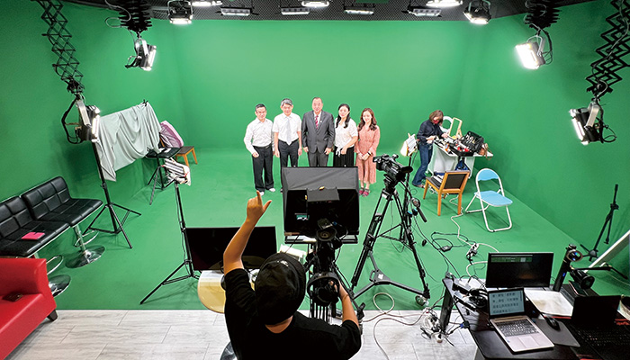 致理科大校長、副校長等於致理數位攝影棚拍攝教育部計畫成果影片