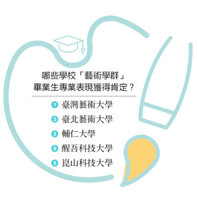 藝術呈現包含許多樣態,在職場上更需要將藝術表現的思維、理論,與技術及科技相互結合。在2023企業最愛大學排行中,「藝術學群」獲得肯定的學校涵蓋傳統知名藝術大學,及近年來持續將科技、應用等結合藝術的大專校院。