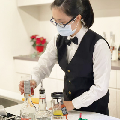 除此之外,根據不同老師的背景,系上也安排了相當多元的課程,例如:飲料調製乙級專業證照,張曉平說明,這項證照必須熟記90道世界知名酒譜、聞辨酒測試與咖啡拉花,相當不容易考取,通過比例不到三成。另外,像是會議展覽專業人員、食品品保工程師、保健食品工程師等等,培養的人才可促進健康產業的發展,同時達到畢業即就業的教學目標。