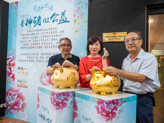 東吳大學愛心不落人後,USR計畫響應新竹縣北埔鄉公所「2023中元藝民祭」活動,認養神豬2隻,分養於2校區。以手邊零錢餵養神豬,涓滴成河,壯大愛心,扶弱送暖,透過師生的力量,讓愛心無遠佛屆。