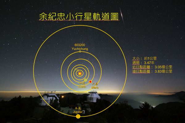 余紀忠小行星經國際天文聯合會(IAU)命名通過,編號為603200,運行太陽一週約3.47年。照:中央大學提供