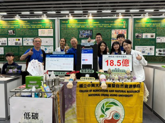 土環系林耀東終身特聘教授率領跨領域團隊,研發「環境友善低碳多功能智慧醫療敷料整合人工智慧創新技術應用」,以農漁廢棄物為原料,透過低碳製程製成具備99.999%抗菌率、93%抗氧化率的綠色智慧敷料。該敷料能在24小時內促進傷口癒合,遠優於國際領導品牌平均3至5天的療效。
