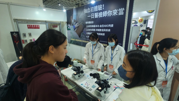 亞洲大學醫學檢驗暨生物技術系,日前參加「2023台灣醫療科技展」,以「醫師力大挑戰:破解謎團!」的「檢」調手體驗活動,提供高中生、大眾體驗抽血、血型鑑定、尿液檢測等相關醫檢項目,讓參與者更深入了解醫檢師,感受到醫學科技的深奧,學習自身的健康管理。