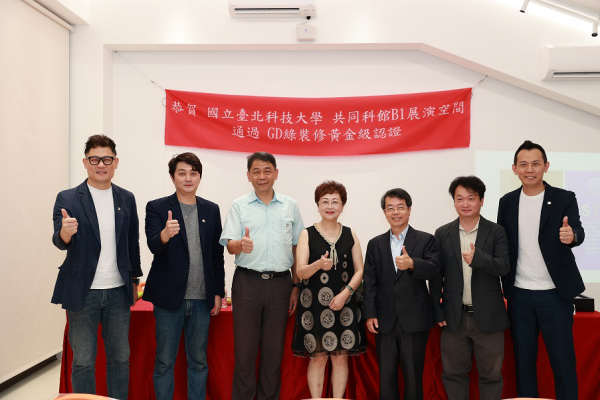 國立臺北科技大學8日下午與《台灣綠裝修發展協會》、《撰美室內裝修事業有限公司》聯合舉辦受贈典禮,以慶祝北科大順利導入「GD綠裝修黃金級認證」於共同科館B1的展演空間,此空間通過空氣品質檢測、使用低毒性建材及配電安全等黃金級認證中的28項指標,給師生一個真正健康無毒的空間。