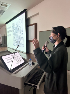 在10月27號這一天,三位在不同場域工作的畢業生們回到漫畫系和許久不見的師長開心相聚,也帶來了精彩的演講內容。目前於橘子集團「beanfun!漫畫星」擔任編輯助理一職的學長分享業界第一手見聞,他說漫畫平台上有很多優秀的作品刊載,想要脫穎而出、獲得讀者喜愛進而生黏著度是要投入相當大的心力。除了繪畫專業之外,他強調提案技巧更是不可或缺;如何在編輯部這個關卡盡可能的展現自己,證明已經具備刊登水準甚至是市場價值,其重要性不容小覷。