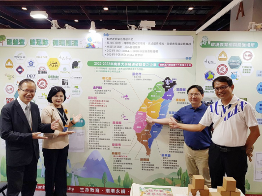 洪耀明指出,自2017年學校首次通過BSI查證,取得ISO 14064-1:2006版碳盤查證書及2022年通過ISO 14064-1:2018版碳盤查後,從中學到如何執行碳盤查的相關知識,因此於2022年輔導16家企業,其中4家已取得第三方認證,2023年結合農糧署與教育部計畫補助,將再輔導近40家企業與學校單位。希望透過本次展覽,讓對重視永續發展的民眾更加了解南華大學在推動永續方面的努力與成果。