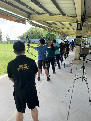 南華大學運動防護團隊正式成軍,隨射箭校隊出賽,以利照護選手。照:南華大學提供