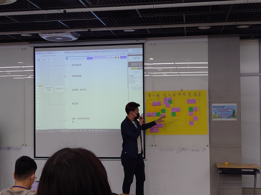 來自屏東的炎富藥師解說自己組別設計出的教案。照:嘉南藥理大學提供