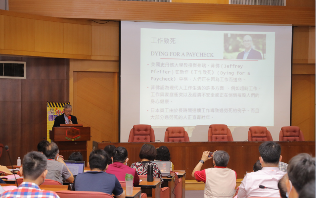 嘉藥副教授孫定平醫師,分享「超時工作對健康的影響」及「職安衛自主管理的實行與績效」。照:嘉南藥理大學提供