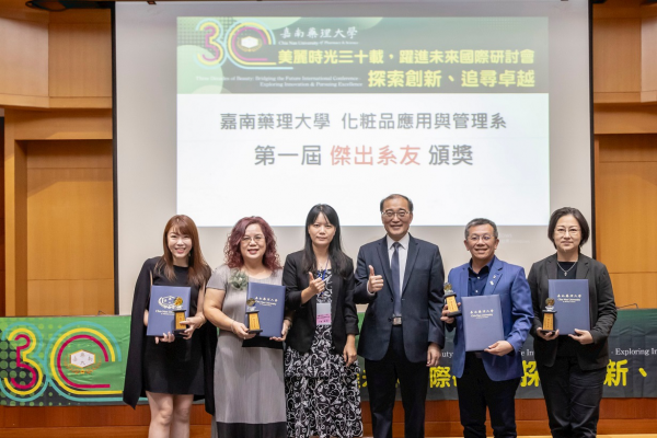 創立於1993年的嘉南藥理大學化粧品應用與管理系為慶祝創系30週年,特別於12月13日起一連4天在校內國際會議中心,舉辦粧品美麗時光30載一系列系慶活動,慶祝活動涵蓋探索創新、追尋卓越國際研討會、首屆傑出系友頒獎、系友座談、專題演講、職涯媒合及第27屆畢業成果展「謎粧迷境」,邀請服務於製造業、服務業、學術界等各產業校友,回母校現身說法,分享現今產業趨勢新知與職涯發展經驗,現場熱鬧滾滾,跨世代的嘉藥粧品人齊聚一堂共同慶賀。