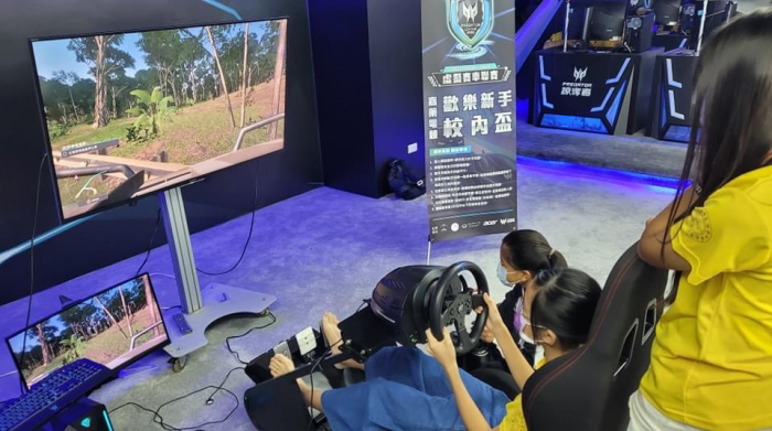 來自阿蓮的學子體驗嘉藥電競黑洞遊戲設備。照:嘉南藥理大學提供