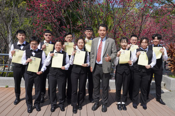 烘焙暨飲料調製學士學位學程助理教授陳俊華指出,證照力就是就業力,乙級技術士是國內飲料調製領域最高級的證照,考過丙級才能報考乙級,擁有乙級證照可以當技術教師,也可以創業,因此鼓勵學生報考。乙級檢定的術科考試包含調酒、聞酒、咖啡拉花,要辨別酒品,也要熟悉各種飲料的調法,系上透過證照輔導課程,連續19個禮拜天帶領學生學習,學生也把握課餘時間苦練,果然一舉創下好成績,13位同學參加考試,其中,餐旅系大二生蒲卉姍、大三生洪雅惠、林雨潔、郭宜靜、賴柏昕,以及烘焙學程大二生陳柏宇、大三生林嘉豪、許鎧竹、楊忠諺、劉雨杭、謝皓文11位同學考取飲料調製乙級證照,通過率85%,遠高於這次的全國通過率三成。