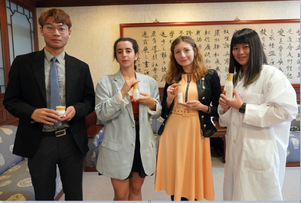 發表會也邀請法國交換學生、企業管理學系的瑪儂(Manon Piret)與環境工程學系的梭蘭(Solesne Zouaki),體驗充滿台灣特色的保養品,法國學生對產品的滋潤感與芳香給予肯定。
