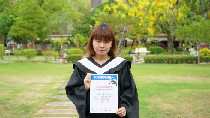 崑大視訊系二技專班應屆畢業生林慰玲,在學期間拍攝豐富影視作品。照:崑山科大提供