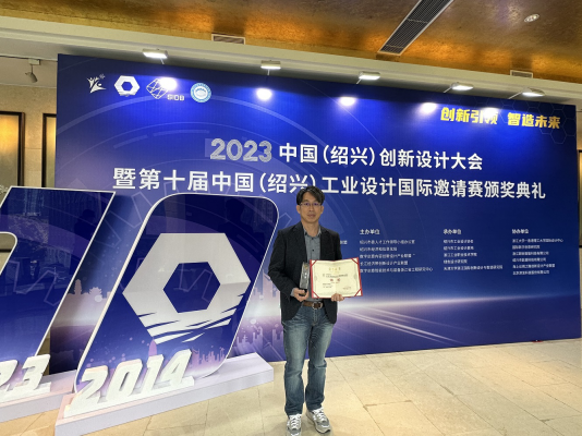崑大視傳系榮獲2023中國(紹興)工業設計國際邀請賽銀牌獎,鄭明輝老師代表領獎。照:崑山科大提供