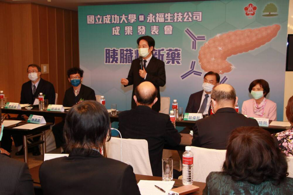 台灣之光,成功大學張明熙教授──介白素二十單株抗體有效治療胰臟癌獲世界知名期刊《Nature Communications》刊登。12月7日上午在台北發表胰臟癌新藥研發成果。賴副總統親臨現場全程參加,呼籲產業升級,社會多給南部支持。科技部次長謝達斌表示,新藥滿足醫療未竟需求,期許成立永福生技於台南為價創團隊增添生力軍。