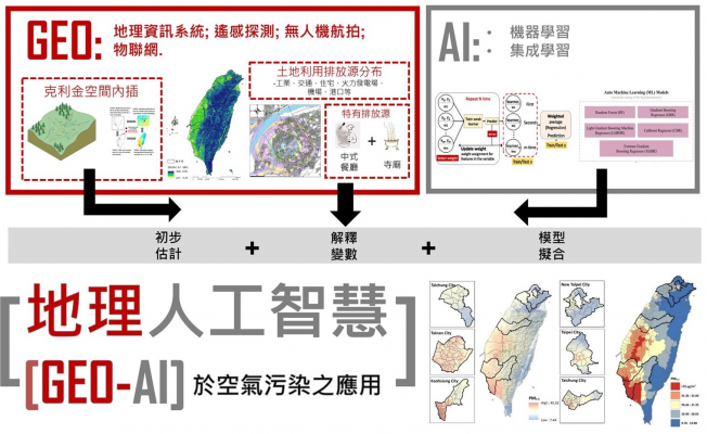 成大吳治達副教授與團隊應用地理人工智慧(Geo – AI)技術,發展集成混合空間推估模型(EMSM)方法。照:成功大學提供