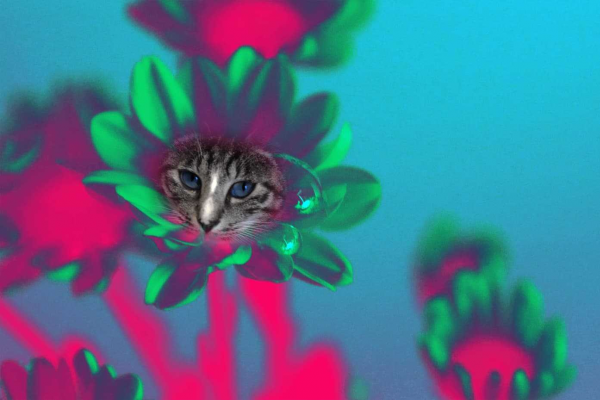 大三學生吳雙的創作融合貓咪與花朵,吸引國外知名生成式藝術家收藏。照:政治大學提供