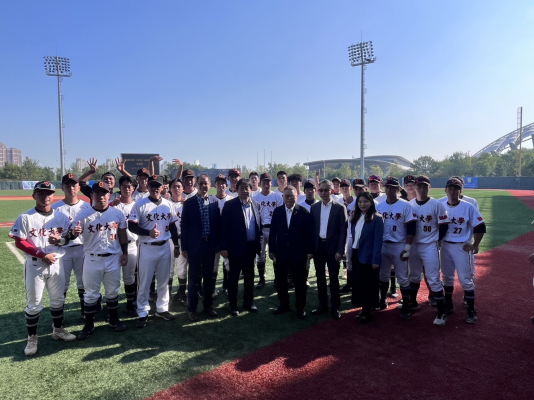 文大校長王子奇近期帶領棒球隊師生拜訪北京大學及天津體育學院,除了與北京大學棒球隊學生展開交流訓練,同時也和被稱為「大陸棒球國手培育搖籃」的天津體育學院舉行兩場友誼賽,兩場比賽文大險勝,也拓展了台灣和大陸體育專業上的深度交流。