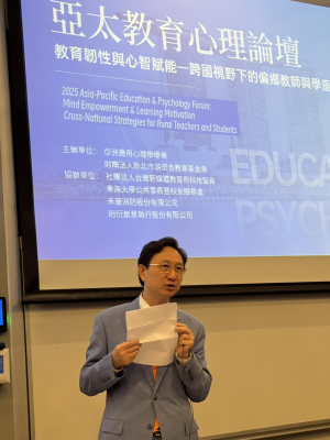 東海大學副校長張嘉修指出,教育韌性需要理論與實務並進,並強調「台灣與亞洲的教育經驗應透過 SCI 與 SSCI 發表,轉化為全球共享的知識資產。」他呼籲學術連結成為亞洲教育走向世界的重要途徑。亞洲應用心理學學會創辦人謝宗順副研究員說,在疫情後的亞洲,教育不再只是課堂的教學,更是國家社會的長遠投資。