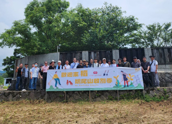 明治大學師生漫步坪頂三古圳 溽暑體驗稻浪棧道下收割樂趣