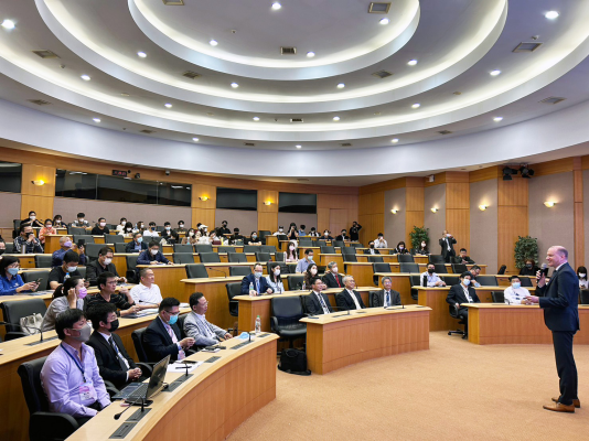 此次論壇還有ZNT智偌德科技的執行長Bernhard Marsoner遠從德國飛來臺灣參與,ZNT於去年與義守大學簽訂了產學合作協議,執行長相當感謝義守大學的邀請,並與產學界人士一起探討智慧製造與永續經營的相關議題。ZNT肯定義守大學的教學專業,在捐贈Siemens製造執行及生產排程軟體給學校的同時,也分別規劃Opcenter MES及APS的課程,並支援專業顧問業師群協助授課。ZNT的客戶多元,透過產學合作可為各製造業培育智慧轉型人才,也讓義大學子於在學期間就能熟悉製造環境使用的軟體,畢業後立即上手,打造職場即戰力。