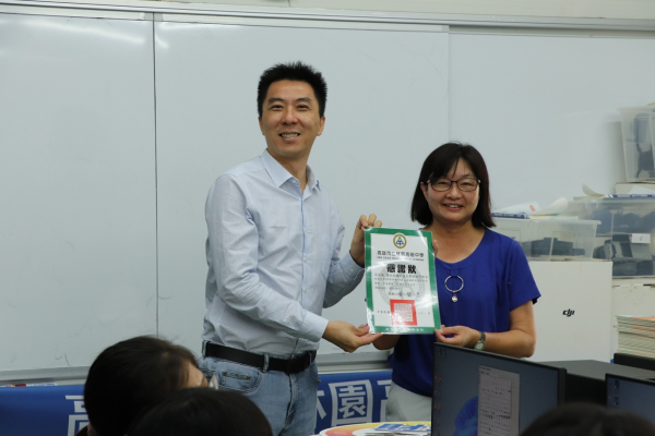高科大財管系副教授蘇玄啟(左)兼任財管系主任,長期協助高中職端導入大學教學資源,引入跨域學習、專題導向課程。照:高科大提供