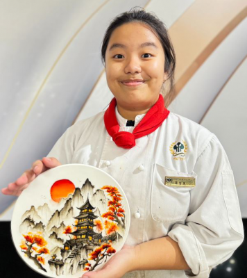 不是很厲害進到高餐,而是進到高餐後,變得很厲害!西廚系的周依蕙,高中時非餐飲相關的本科生,因為對餐飲抱有濃興趣,因此選擇就讀西廚系,第一次參加國際比賽,就拿到「海鮮銀牌」、「雞肉銅牌」,讓他學習到許多課堂之外的重要經驗,包含食材叫貨、時間與事項安排,整個人脫胎換骨,也對未來更有想法;指導的師長黃鈺城表示在「JLCC韓國濟州島國際廚藝競賽」中,能有3銀6銅2佳作好成績,都是平日在校紮實實作經驗所累積,未來將繼續累積學生的實戰經驗。