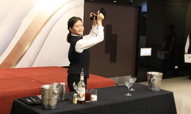 年僅15歲蕭苡晴穩健台風贏得無酒精傳統調飲組金牌。照:國立高雄餐旅大學提供