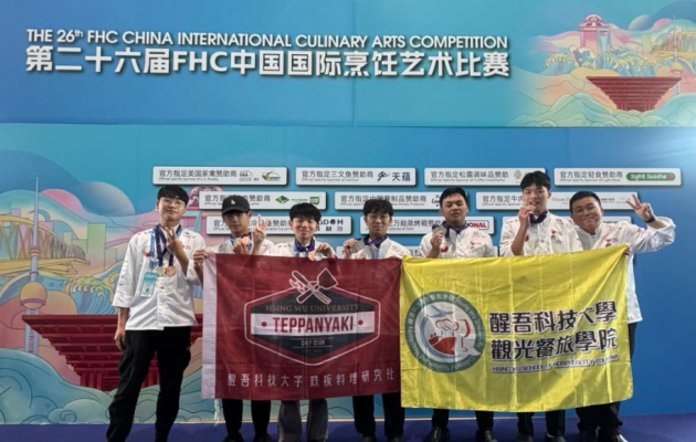 醒吾科技大學餐旅管理系再創國際佳績!由朱俊松老師率領六位學生代表出征「第二十六屆 FHC 中國國際烹飪藝術比賽」,在這場世界廚師聯合會(World Association of Chefs’ Societies)認證的 A 級國際賽事中,勇奪 10 面銀牌與 4 面銅牌,以卓越廚藝與創意脫穎而出,為校爭光。