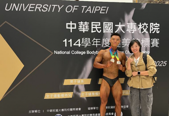 為強化學生體能,並促進大專學生在各項運動的職能,教育部體育署於11月8日主辦「中華民國114學年大專校院健美錦標賽」,崑山科技大學休閒遊憩與運動管理系一年級楊承勳在眾多強勁對手中脫穎而出,分別於「古典形體組」與「傳統健美組」勇奪第二名佳績,展現堅毅不拔的精神與卓越的體能素質。