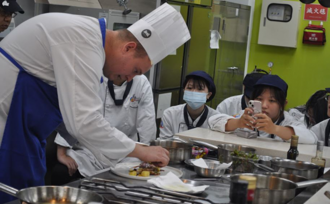 醒吾科技大學餐旅系積極推動國際交流,11日邀請義大利ICIF廚藝學院名廚保羅‧吉博多(Paolo Ghibaudo)蒞校示範教學,現場指導兩道高難度料理「豬頰肉卷干貝佐洋蔥醬搭紫薯片」與「皮蒙特大區傳統羊排佐蔬菜」,引領學生親眼見證國際級料理廚藝。
