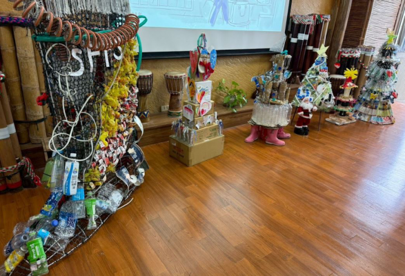一至六班級學生利用廢料製作裝置藝術。照:國立東華大學提供