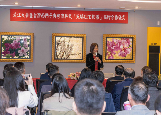 淡江大學於1月10日舉行「尖端CFD軟體」捐贈合作儀式,西門子數位工業軟體亞太區解決方案合作夥伴銷售副總裁 Jennifer Lim致詞。照:淡江大學 提供