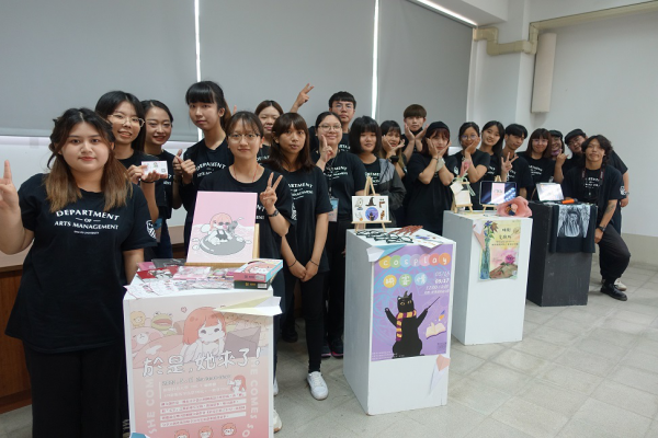 《於是,她來了!》策展團隊有吳沛璇、蔣玉婷、蘇子雯、陳雅琪、劉逸函五人。時間5月11日(四)14時至16時假橫山基地一樓 THE T café咖啡店舉行。預計邀請台灣IP授權圖文創作者《於是日常了》之RJ蒞校,分享文創產業的秘辛及角色原創和插畫故事,提供喜歡圖文作家、或是對未來有意朝向文化創意產業的同學一個交流機會。早鳥票200元、一般票250元。