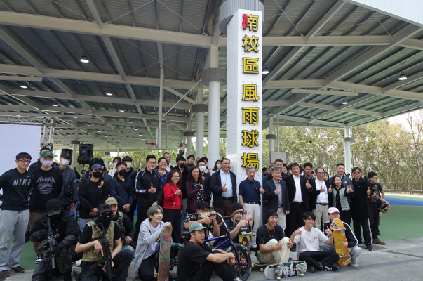 董事長朱元祥表示,今日揭牌的南校區風雨球場受限於南校區的空間只有4面球場;明年7月至8月對面北校區12面球場,並含網球場的風雨球場亦將啟用,亮眼的設計風格會是全國矚目及旗楠公路的地標,精彩可期。