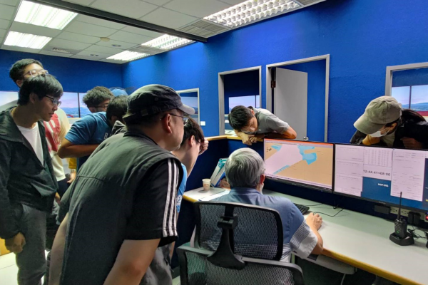 海大學生操作領導統御與駕駛臺資源管理訓練系統。照:臺灣海大提供